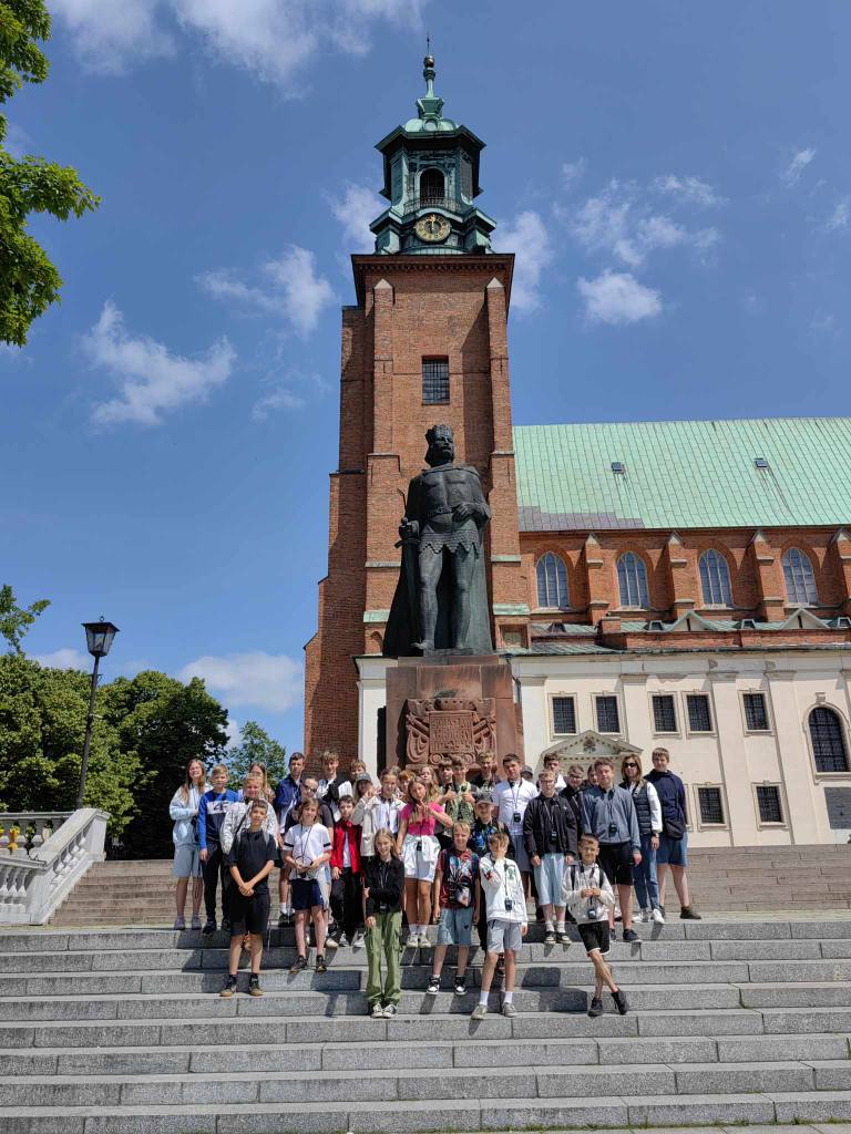 Pierwszym punktem naszej wycieczki było Gniezno – miasto uznawane za kolebkę państwowości polskiej. Zwiedziliśmy tam Muzeum Początków Państwa Polskiego, w którym mogliśmy zobaczyć interesujące wystawy dotyczące czasów pierwszych Piastów oraz początki chrześcijaństwa w Polsce. Następnie udaliśmy się do słynnej Bazyliki Archikatedralnej, gdzie znajdują się Drzwi Gnieźnieńskie – unikatowy zabytek sztuki romańskiej, przedstawiający sceny z życia św. Wojciecha.
