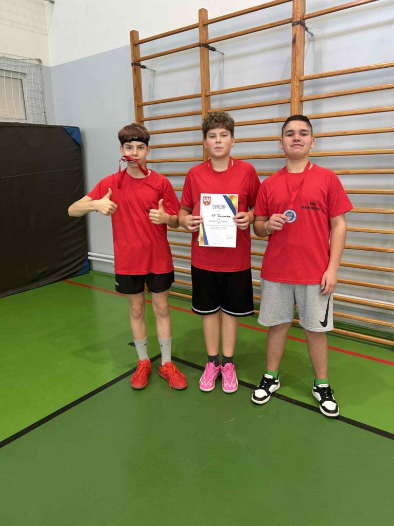 stołowych z naszej szkoły. Tym razem chłopacy w składzie: Mateusz Bernacki, Mateusz Łupicki oraz Matviy Tereniuk po zaciętej i wyrównanej walce zostali mistrzami powiatu