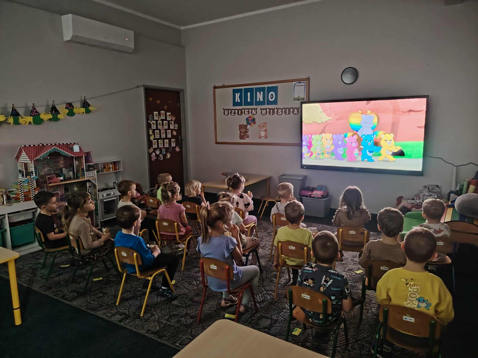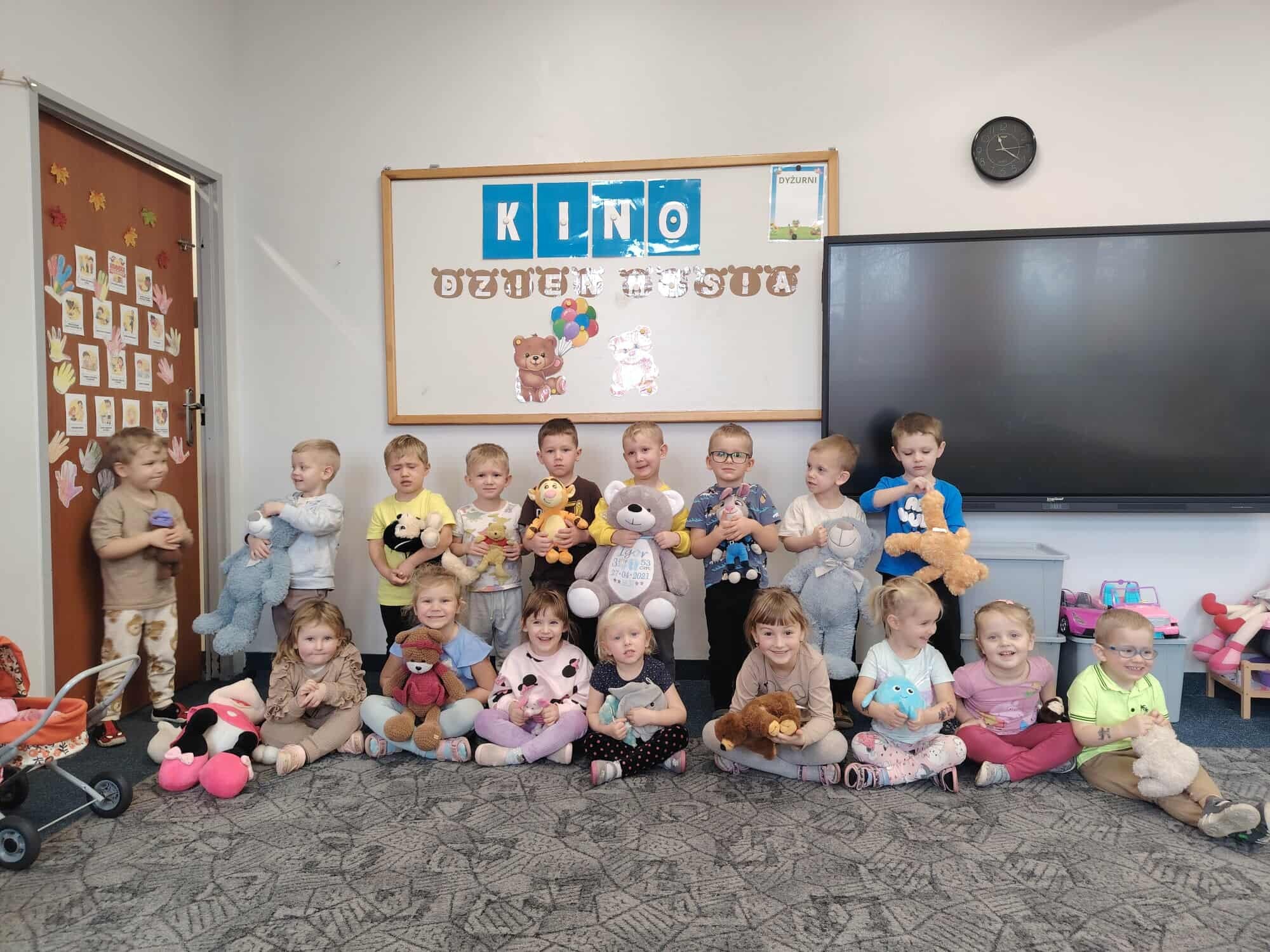 W sali przedszkolnej panowała radosna, misiowa atmosfera – dzieci przyniosły swoje ulubione pluszaki, o których chętnie opowiadały. W ramach świętowania przedszkolaki pobawiły się również w „przedszkolne kino”, oglądając krótki film o misiach. Wszyscy świetnie się bawili, a uśmiechy nie znikały z dziecięcych twarzy.