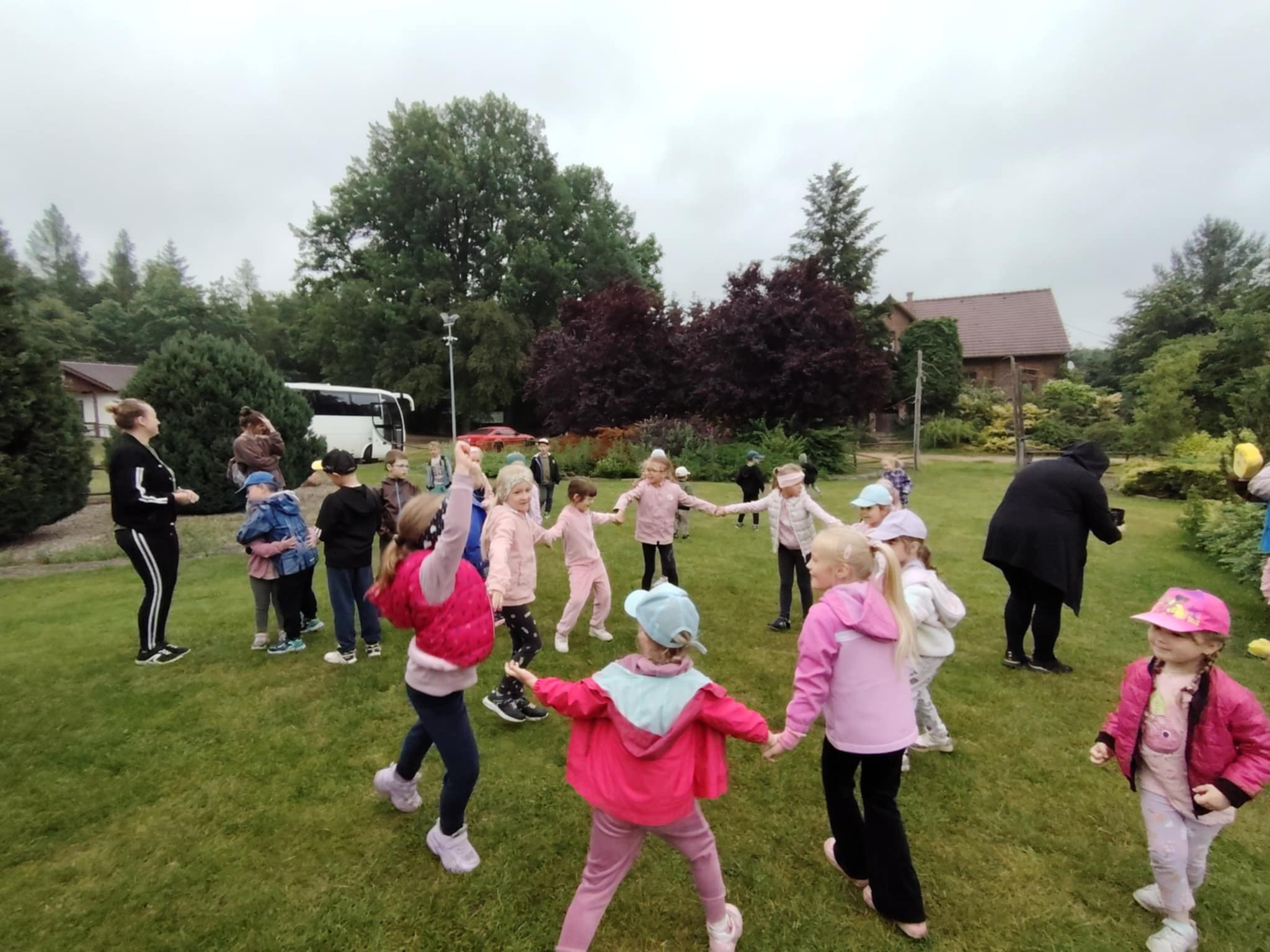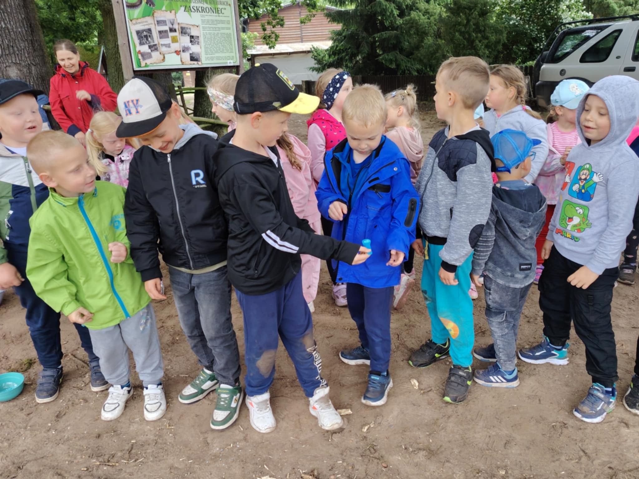 Choć pogoda tego dnia nie była idealna – niebo zasnute chmurami, a w powietrzu unosiła się lekka wilgoć – przedszkolaki z wielkim entuzjazmem wyruszyły na wycieczkę do lasu w Koczurach, należącego do Nadleśnictwa Włoszakowice.
